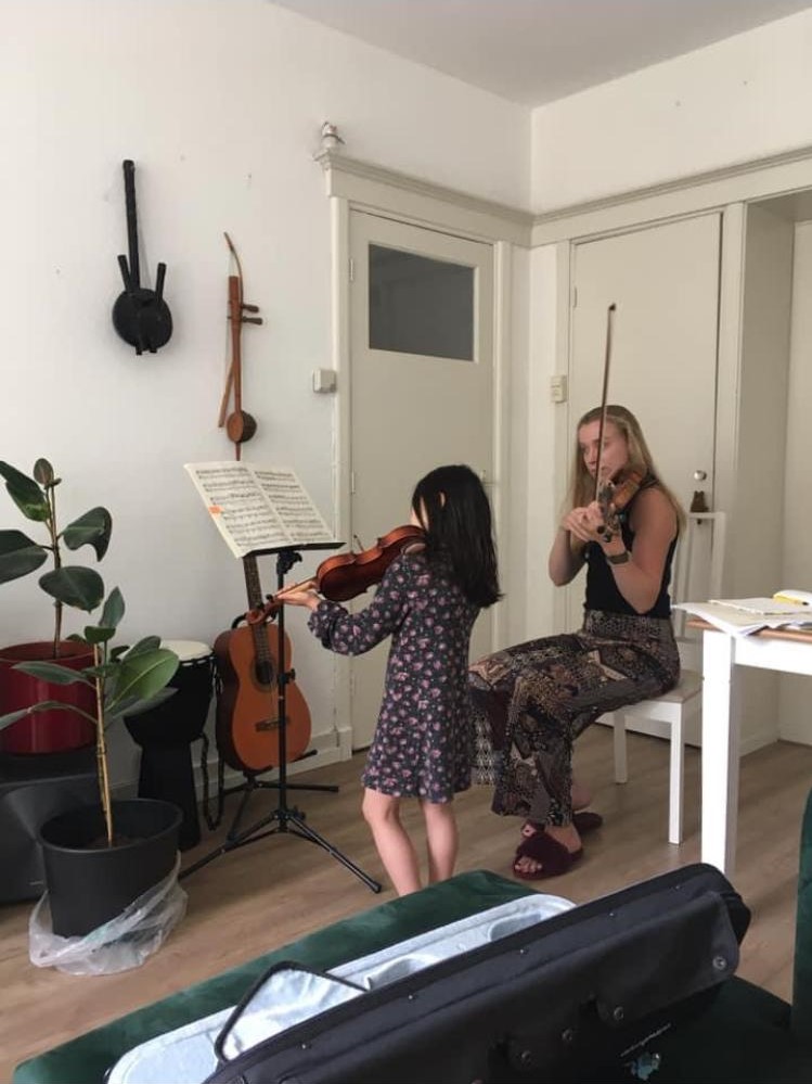 In 2019 ben ik afgestudeerd aan het conservatorium in Den Haag, waar ik heb mogen studeren met Jaring Walta. Daarna studeerde ik verder bij Philippe Graffin aan het Conservatorium in Brussel. Ik heb in de jaren dat ik studeerde veel geleerd als violiste, maar ook heb ik in die tijd al veel lesgegeven. Zo heb ik de kans gekregen om te ontdekken wat ik belangrijk vind als ik zelf les krijg en dus ook wat ik belangrijk vind voor mijn leerlingen. Plezier en uitdaging staan bij mij voorop.
